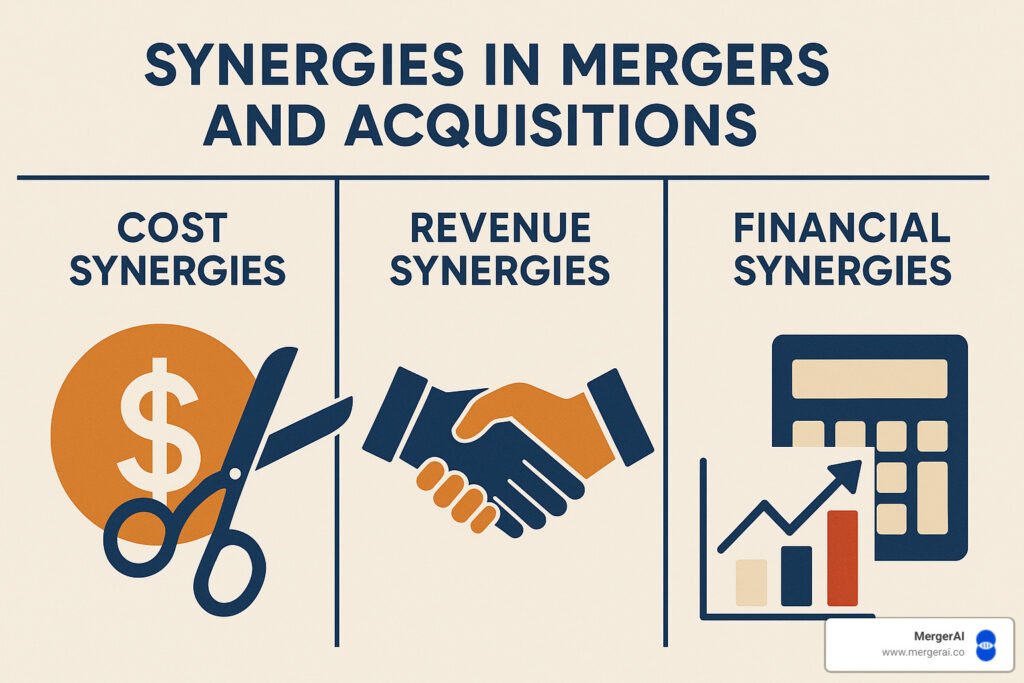 • Synergies: The magic word! 1+1=3 through cost savings or revenue boosts.