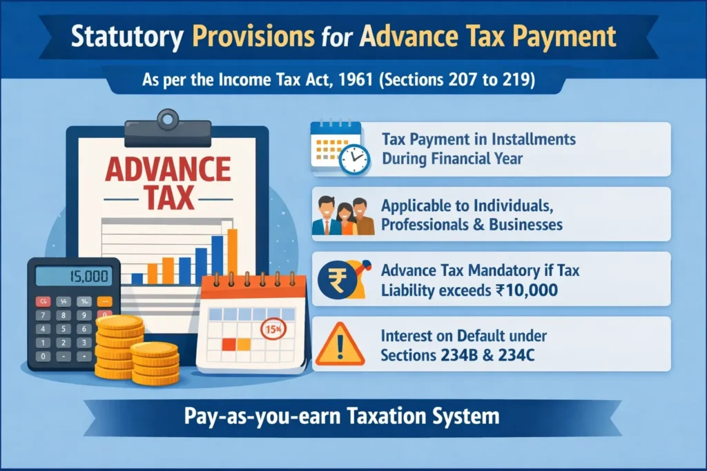 The provisions relating to advance tax are contained in Sections 207 to 219 of the Income Tax Act, 1961.